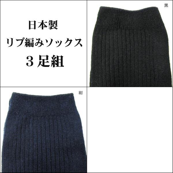 靴下 日本製 リブ編み ハイソックス 3足組 23〜25cm 丈28cm 丈38cm 紺 黒 set0349 /